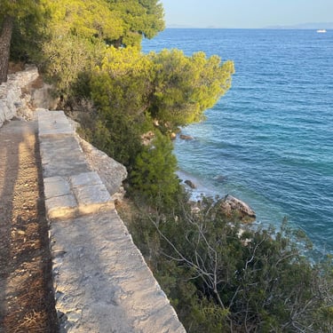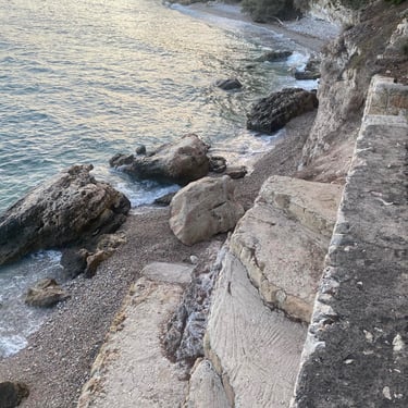 There are on the plot 12 Olives 2 lemons 1 oranges Access to the sea is private with stone built steps